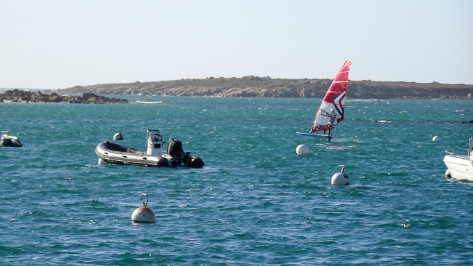 l’étape suivante, port St-Sauveur où les pratiquants de windsurf et de kitesurf s’en donnent à cœur joie
