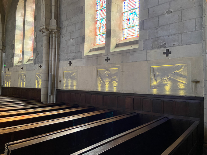 Le chemin de croix en bas-relief sculpté est du plus bel effet !