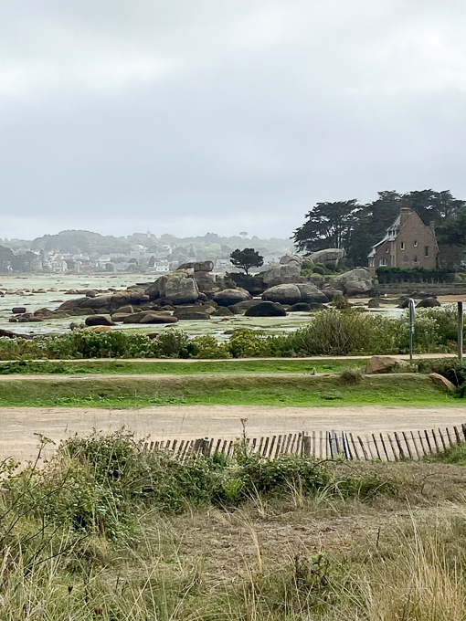 sur le littoral, la vue vers les sept îles et vers « la maison du littoral » à Ploumanac’h