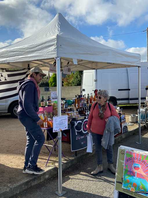 Lundi c’est jour de marché à Trégastel pour une fois que ce n’est pas le samedi nous en profitons. A environ 1 km du gîte, nous y allons à pied.