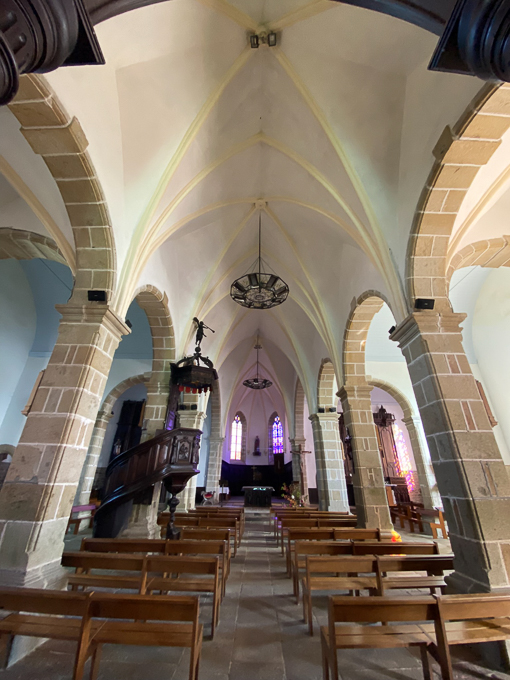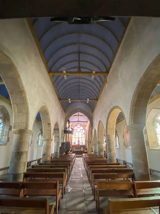 A Pleumeur-Bodou, nous visitons un des rares bâtiments accessibles, l’église St-Pierre