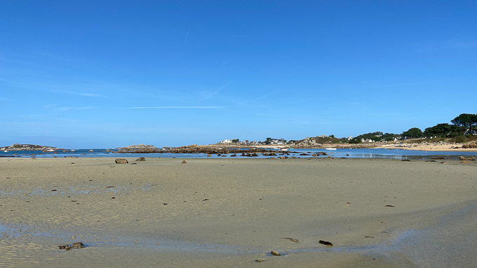 En arrivant de Trégastel à Landrellec : l’île Jaouen, la plage de Landrellec, la plage de Treiz-Lern, l’île plate et la plage du port