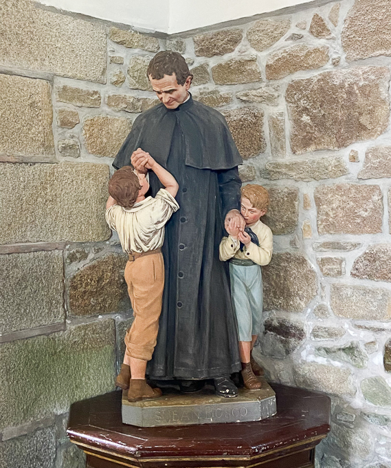Cette statue a été édifiée en 1869, à l’initiative du recteur Jean-Jacques Bouget.