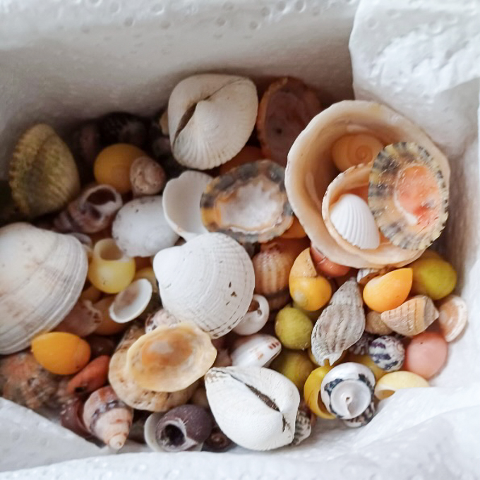 Le point sur la récolte de coquillages pour Gisèle, le cadeau pour Marie-Anne sa belle-fille qui les convertis en pendentif