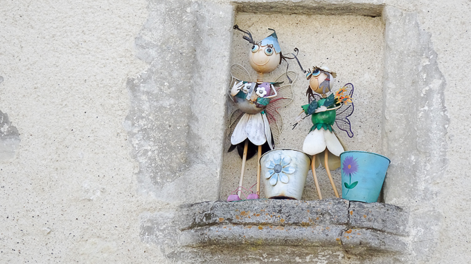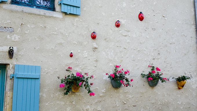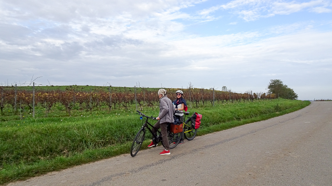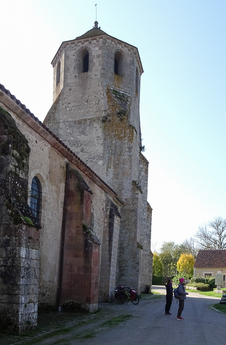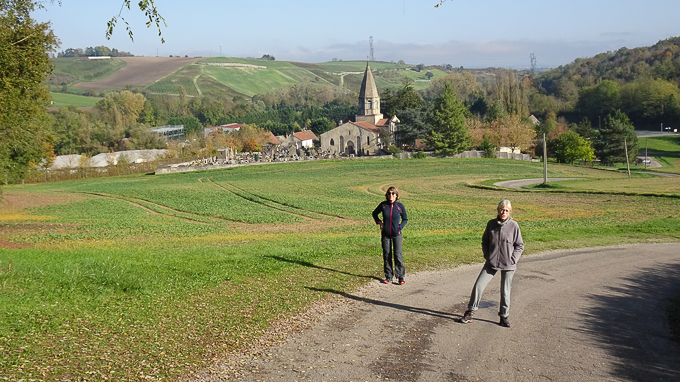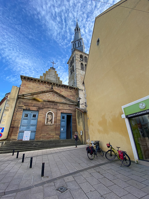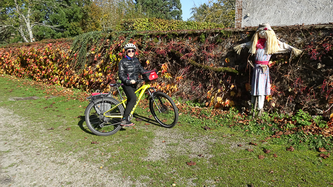 Après la marche sans problème pour moi, nous testons aujourd’hui le vélo en allant à St-Pourçain-sur-Sioule sous le soleil, mais la petite laine s’impose.
