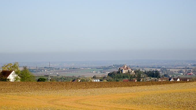 Au loin vers l’Est, le château de Montfand et la plaine de l’Allier