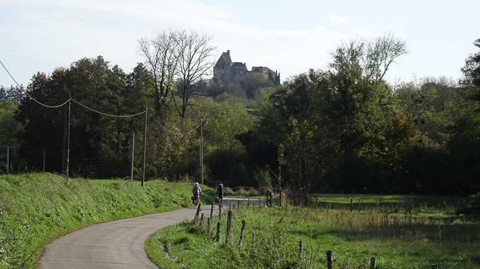 Je n’arrive pas à me lasser de cette vue ; le « serpent » qui nous emmène au pied du château de Montfand