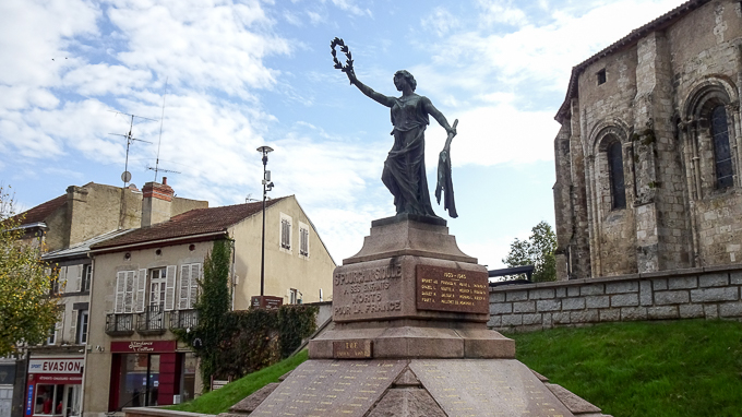 devant l’église Ste-Croix à côté de la halle, le monument aux morts