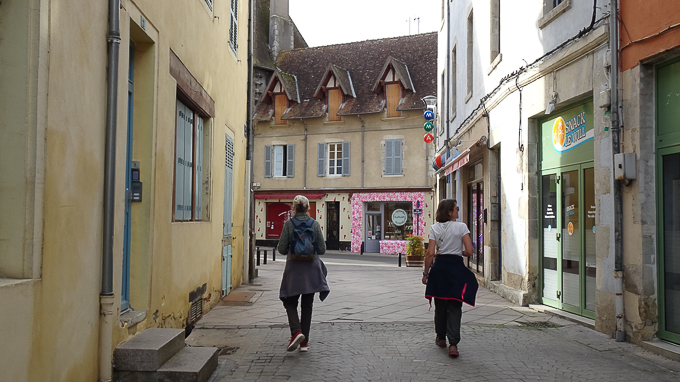 A St-Pourçain notre première étape « Coiff&Co » pour Simone, les cheveux sont trop long pendant ce temps nous partons, Magali et moi, dans le centre ville,