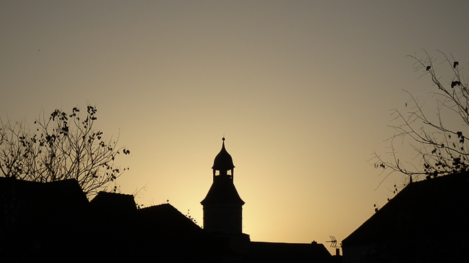 l’église St-Jean-Baptiste et son clocher tronqué date du 12ème siècle et faisait partie autrefois des fortifications de la ville