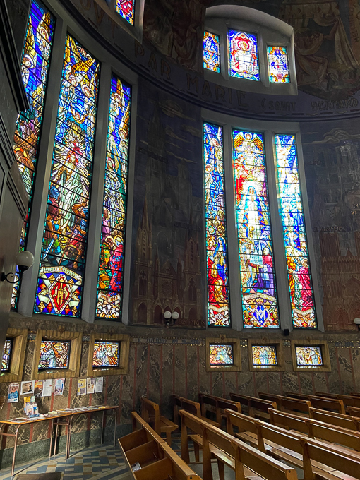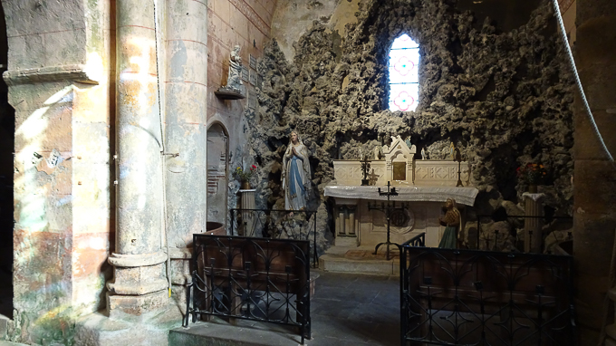 dans l’église St-Blaise, de style art déco, elle date du 17ème siècle, les décorations intérieures et vitraux sont dus aux frères Mauméjean