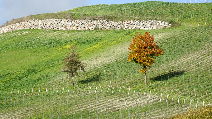 Sur le coteau de la vallée du Gaduet, un des arbres s’est paré magnifiquement des couleurs d’automne