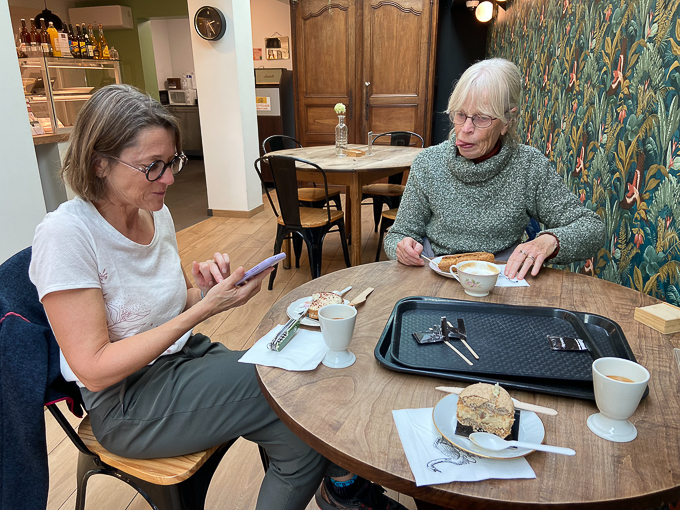 En passant devant « Le Cygne en Ville », Magali et moi ne pouvons pas résister, encouragés par Simone qui n’est pas la dernière à se lècher les babines
