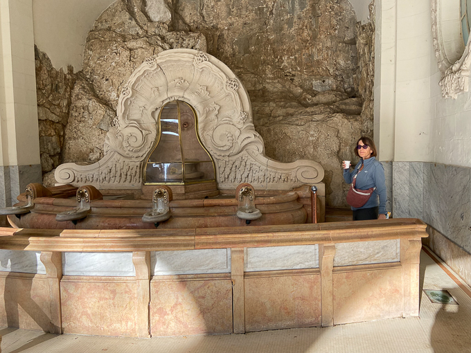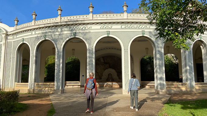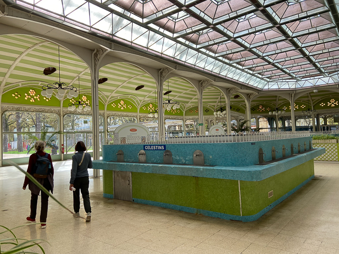 le hall des Sources, un hâvre de paix coupé de l’extérieur, la dégustation de « Vichy Célestins » est gratuite ; nous remplissons nos gourdes d’une eau naturellement gazeuse