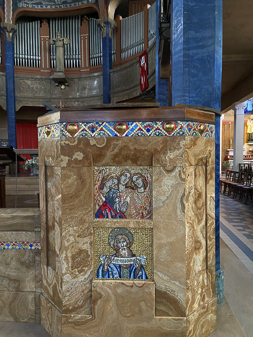 Nous nous frayons un chemin dans le dédale des palissades de chantiers et arrivons à l’église St Blaise.
