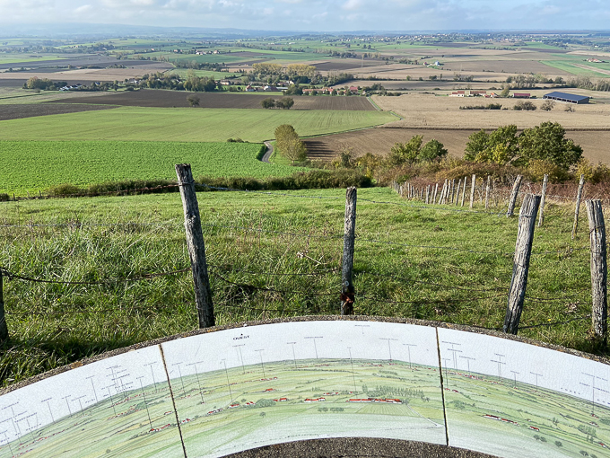 En bordure de la D223, au niveau d’une statue ; la statue de la Vierge Marie – Notre-Dame du Retour – , nous voyons un panneau « Table d’Orientation », allons voir !