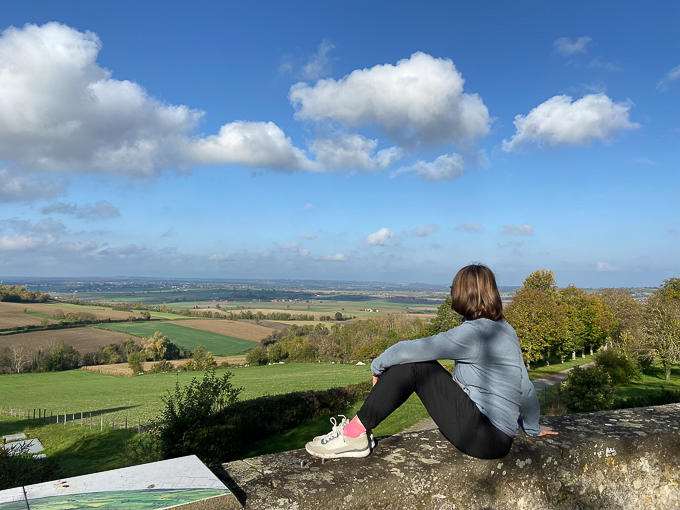 Magali fascinée par le magnifique panorama sur la plaine de la Limagne rêvasse