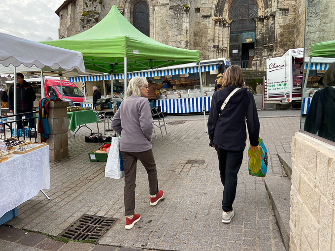 Samedi matin retour au marché de St-Pourçain-sur-Sioule chez le poissonnier, l’apiculteur, les fruits et légumes et le boulanger