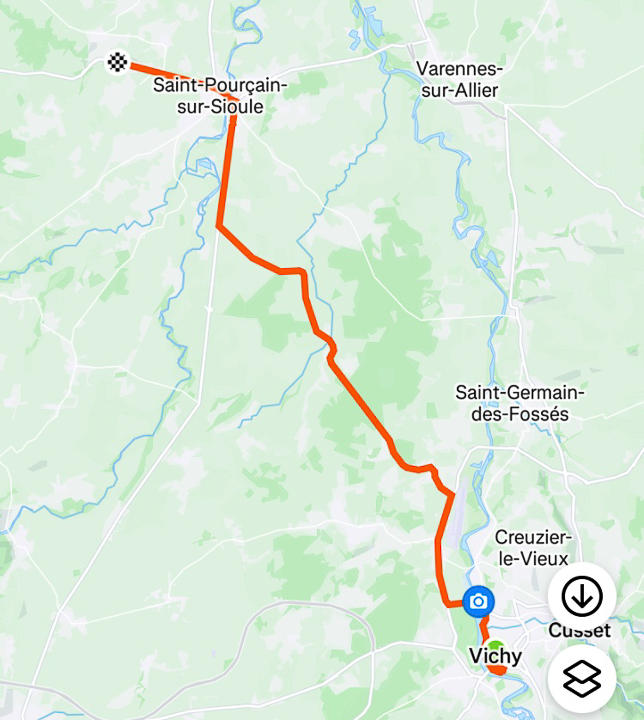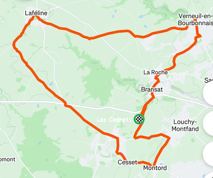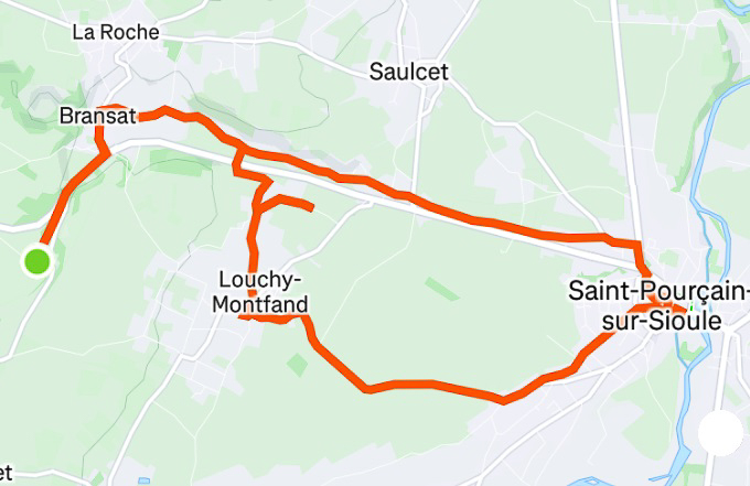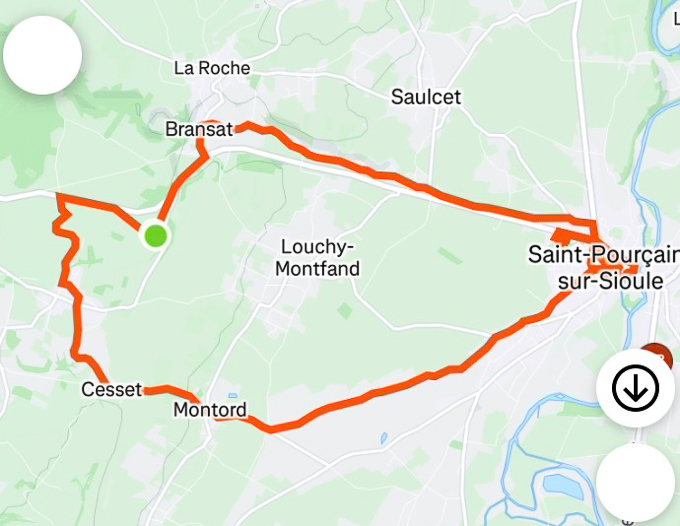 et récupérons nos vélos, quittons St Pourçain par la rue de Souitte puis la route de Montord pour déboucher sur Cesset puis retour au bercail