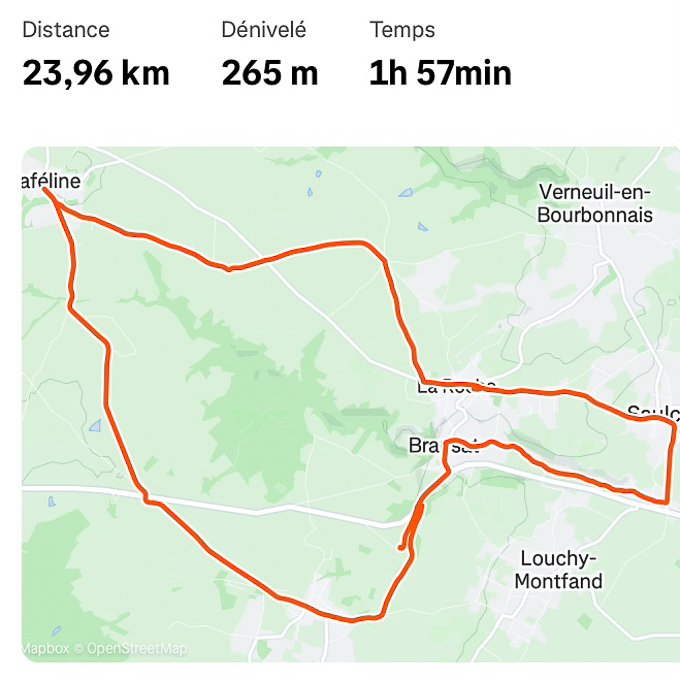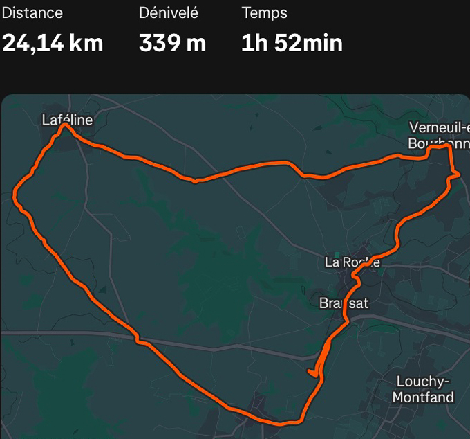 la sortie à vélo du 9 novembre 2024 avec Magali dans le sens inverse des aiguilles d’une montre