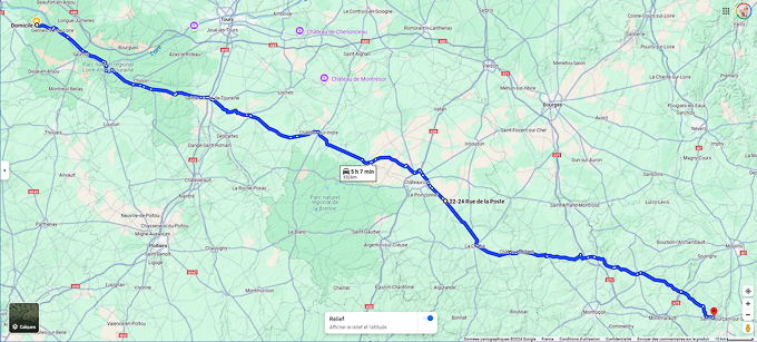 Plus ça va et moins on a envie de faire de la voiture et on ne veut pas imposer à Magali trop de km, Simone recherche un hébergement à environ 350 km.