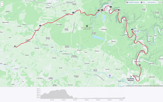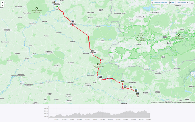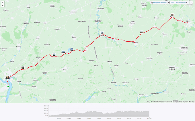Samedi 30 août 2025 le 10ème jour, nous changeons encore de cap, cap au Sud-Est parallèle à la frontière belge, les choses sérieuses vont commencer, nous arrivons dans les Ardennes.