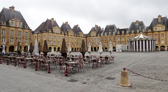 la place d’Armes de Rocroi sous la pluie ! et avec le soleil, quelle impression laisserait-elle ?