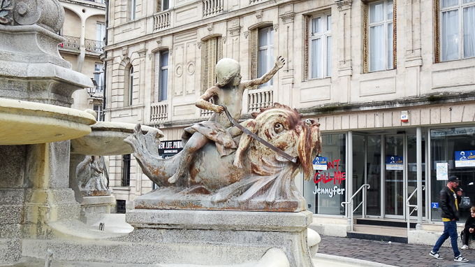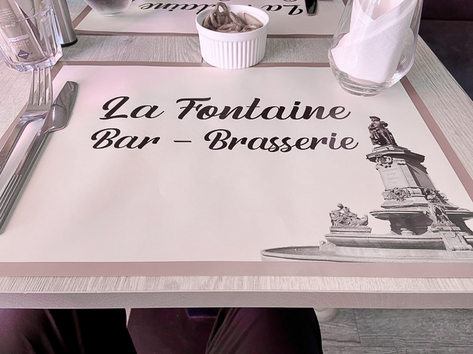 Il est midi, rue Pierre Bérégovoy, un bar – brasserie « La Fontaine » dont le menu du jour nous allèche