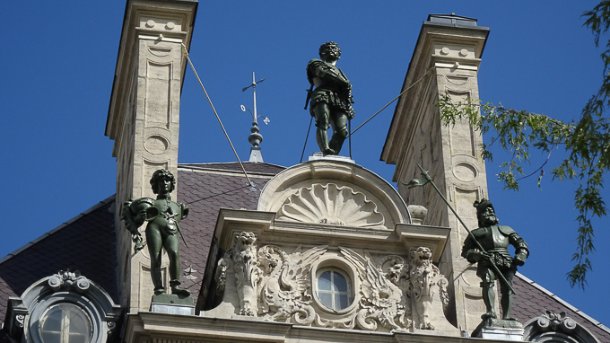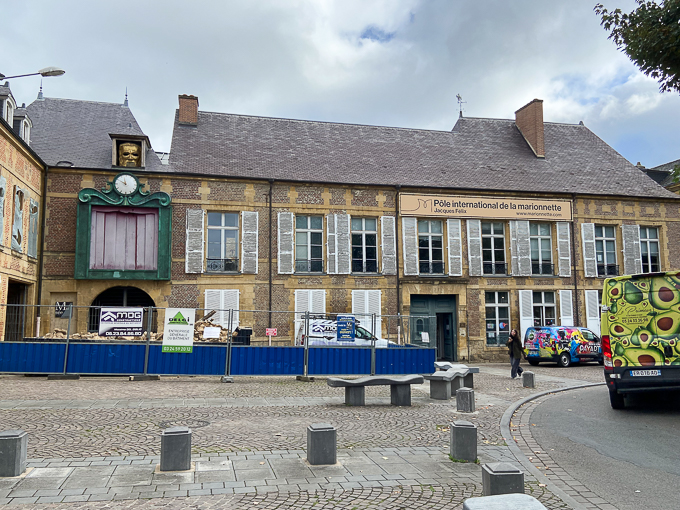 A 10h, nous nous dirigeons par la rue de l’Arquebuse vers l’horloge du Grand Marionnettiste. L’automate a été conçu pour ressembler à un marionnettiste dont les différentes parties du corps sont incrustés dans une partie de la façade de l’Institut International de la Marionnette
