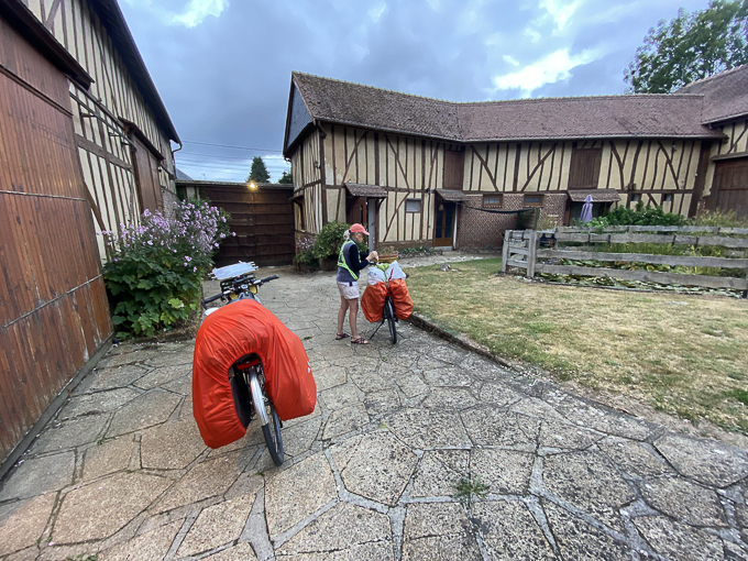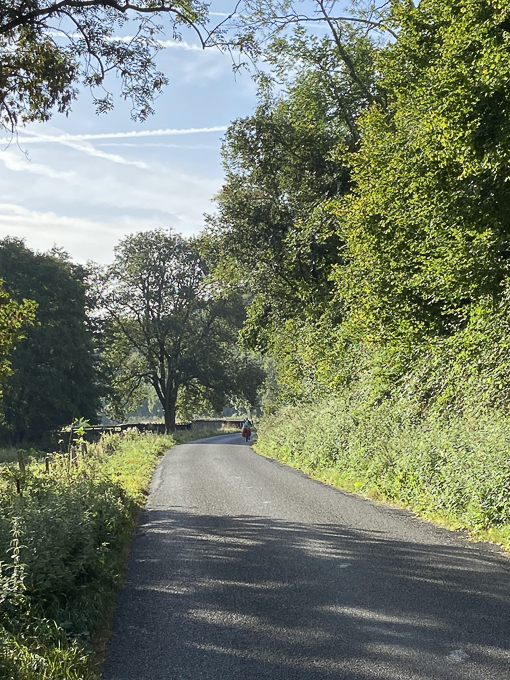 Départ à 7h45 pour une étape de 90km, après un petit-déjeuner de viennoiseries surgelées réchauffées au micro-onde, tout de même croustillantes, par la personne qui préparent les petits-déjeuners. Les 3 chambres à l’étage dont la notre, sont occupées
