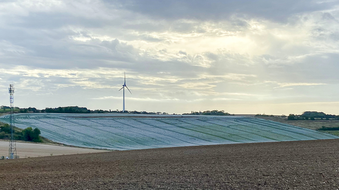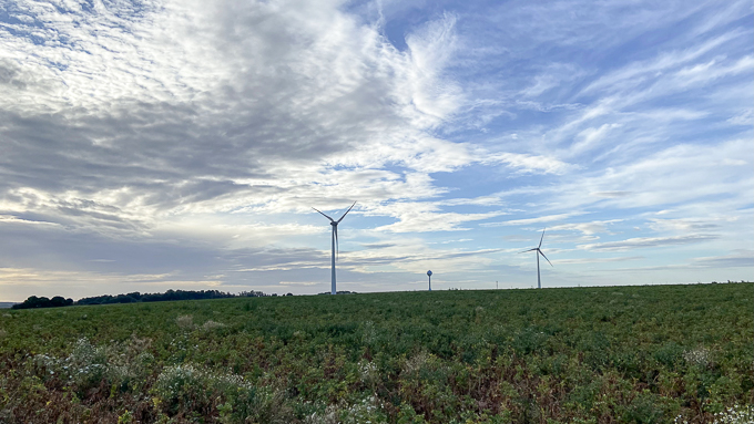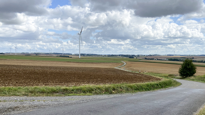 sur la D101 près de Longavesnes (80), les éoliennes et le château d’eau