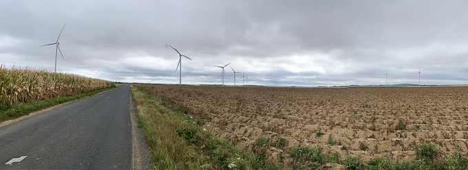 C’est le troisième jour que nous découvrons des « forêts » d’éolienne, à droite, à gauche, derrière nous, devant nous, il y en a partout, à perte de vue !