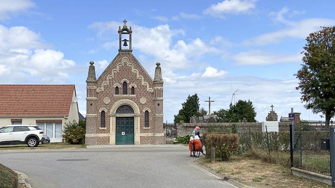En sortant de Le Quesnel, droit devant nous la chapelle Notre-Dame auxiliatrice du Quesnel (80)