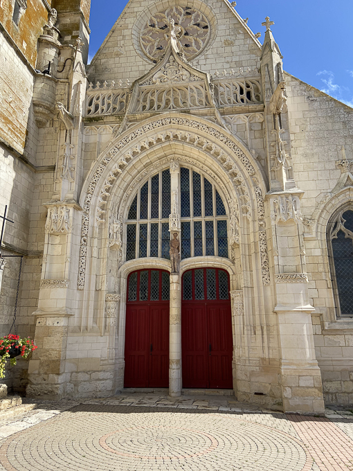 Le portail est flanqué de deux contreforts coiffés de hauts pinacles. Leurs niches abritent des statues, rapportées, comme celles placées dans l’enfoncement du portail.