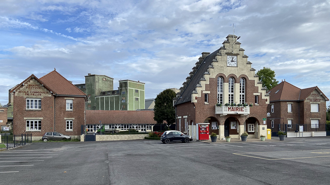 Nous reprenons des forces devant la mairie et les écoles de filles et de garçons à Vendhuile (02)