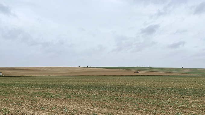 Des champs immenses sont travaillés par des tracteurs immenses, les outils soulèvent des nuages de poussière que nous sommes condamnés à traverser.