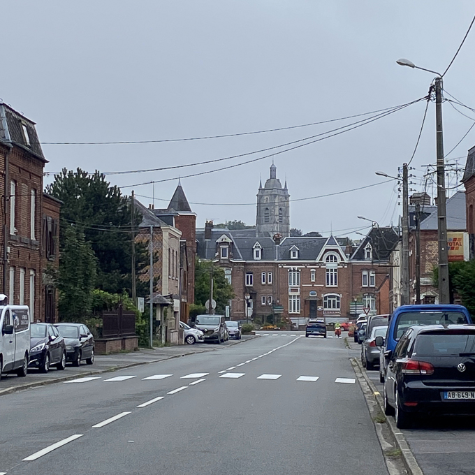 Nous demandons conseil pour le trajet de sortie de Péronne, nous traversons toute la ville, de part en part, pratiquement déserte