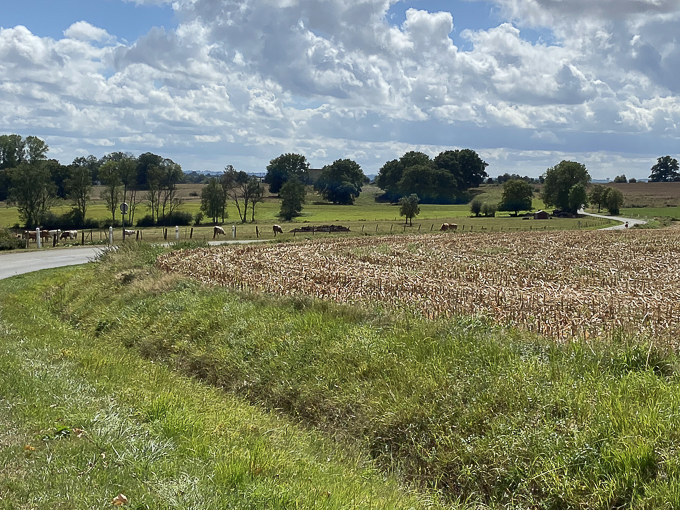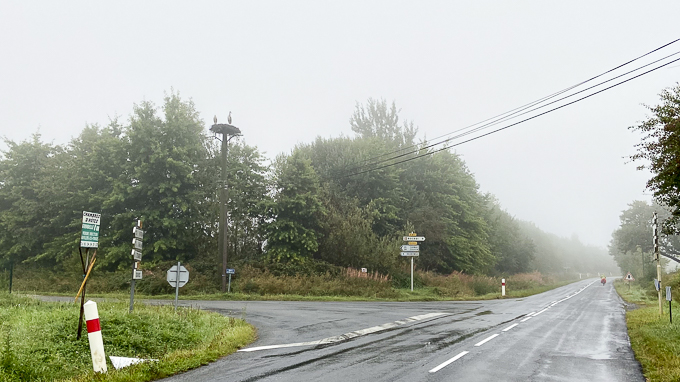 Une étape de 90 km était prévue, nous en avons fait 101 par manque de précision de la carte ; toutes les petites routes n’y figurent pas, pas de repères comme les châteaux d’eau, les calvaires, … j’aurais du garder les pages du vieil atlas routier au 1/150000 où tout y est !