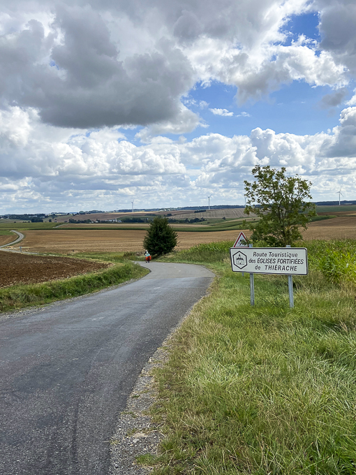 Sur la D134 à la sortie de Fligny (08), un paysage vallonné tel que nous les aimons, pas de monotonie dans notre progression, le « tableau » change en permanence