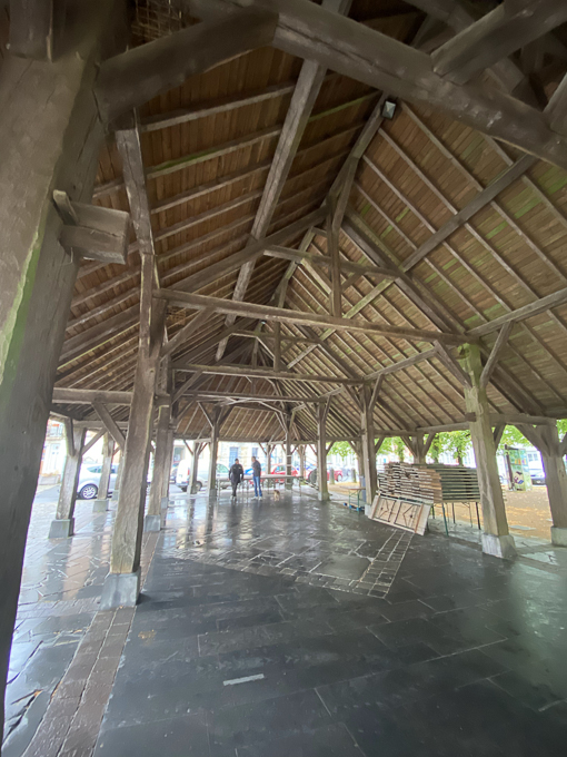 À Rocroi, la halle du marché fait un abri correct pour manger nos petits pains