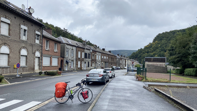 Pas d’aire de pique-nique sur notre trajet et toujours aussi gris et humide, il est midi passé lorsque nous arrivons à Hirson (02) où nous nous contenterons d’un banc