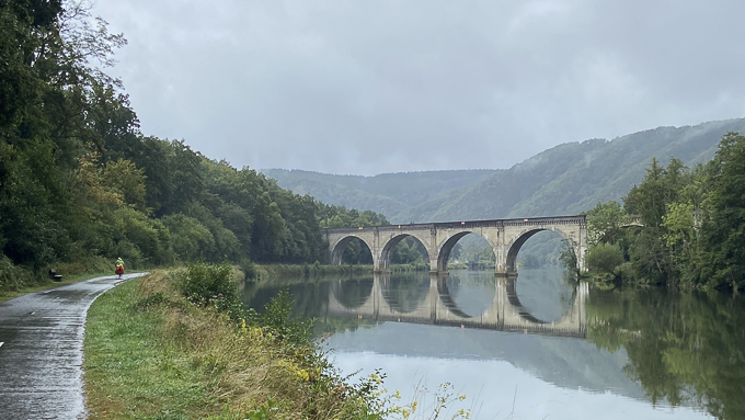 Simone arrive près du viaduc ferroviaire d’Anchamps (08) toujours sous la pluie