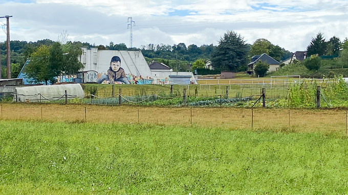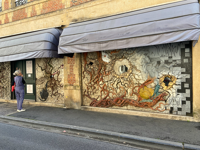 Dans la rue Pierre Gilet, la compagnie Yôkaï a installé une fresque murale sur le thème du « rêve invisible », une façade onirique pour l’atelier d’artiste Animaginarium sur notre chemin vers l’église St-Rémi, l’atelier est fermé.