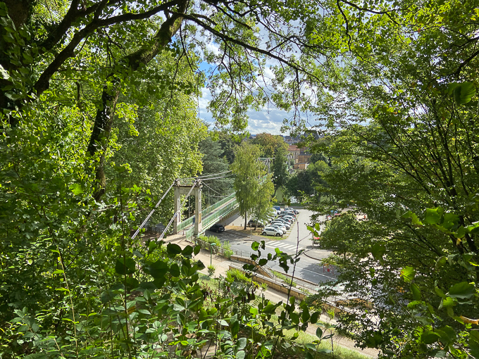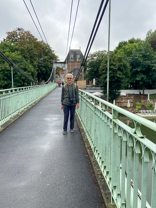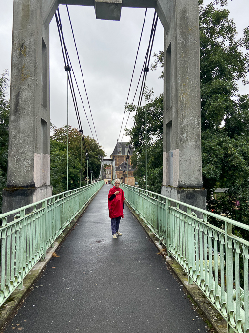 Nous descendons dans la ville par le trajet indiqué par Raphaël, traversons la Meuse sur la passerelle,