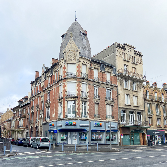 Nous continuons tout droit vers Mézières par la place d’Arches, à l’angle de la rue Duvivier et l’avenue d’Arches un immeuble remarquable