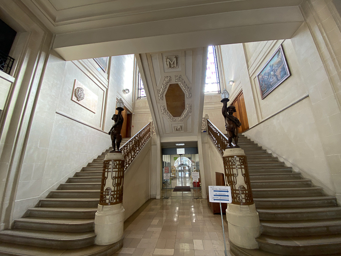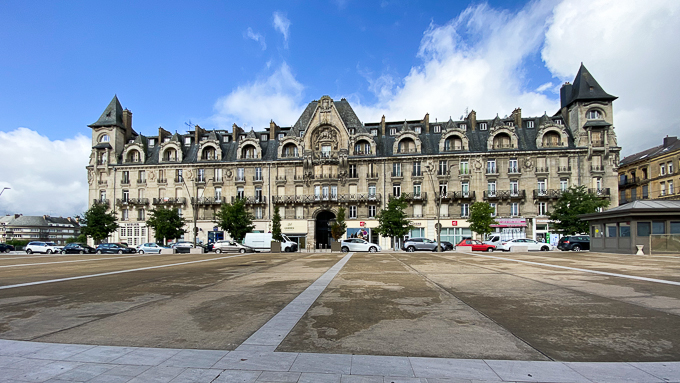 Après la traversée de la Meuse nous arrivons place de l’Hôtel de Ville et ses immeubles remarquables : l’Hôtel de Ville a été inauguré en 1933 et bénéficie aujourd’hui du label « Architecture contemporaine remarquable »