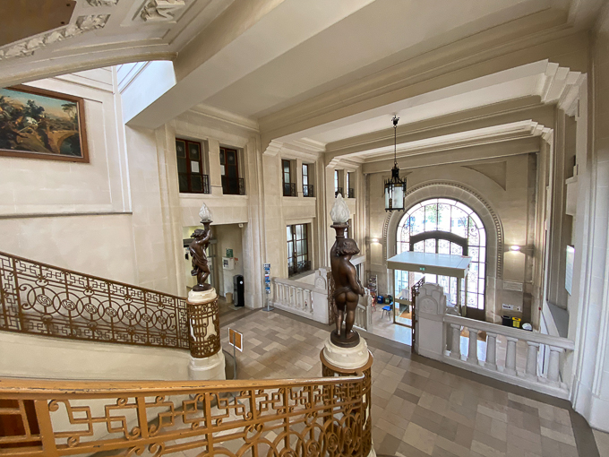 L’alternance subtile de la brique et de la pierre, les tourelles, la céramique et la dentelle de pierre taillée témoignent d’une architecture à la fois originale et harmonieuse conçue par l’architecte Edouard Racine.