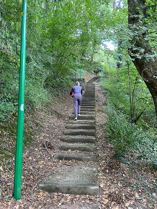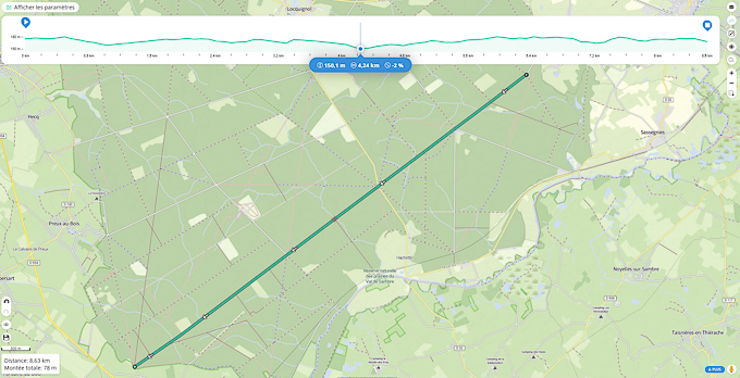 Les 15 derniers km sont éprouvants pour Simone, nous passons de l’altitude 107m à 182m pour redescendre à 131m, une déviation pour chantier qui nous fait tourner en bourrique que finalement nous traversons.