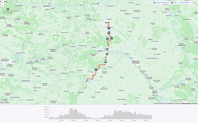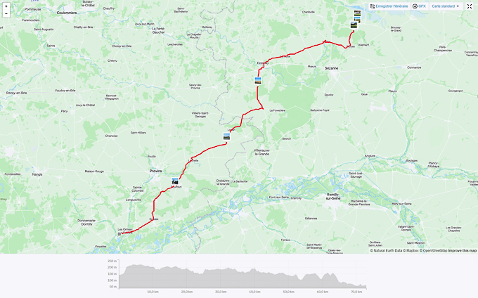 Dimanche 7 septembre 2025, de Oyes (51) à Les-Ormes-sur-Voulzie (77), une étape relativement courte par rapport aux autres jours et à priori sans beaucoup de charme car nous passons dans la Brie le grenier à céréales français avec la Beauce.