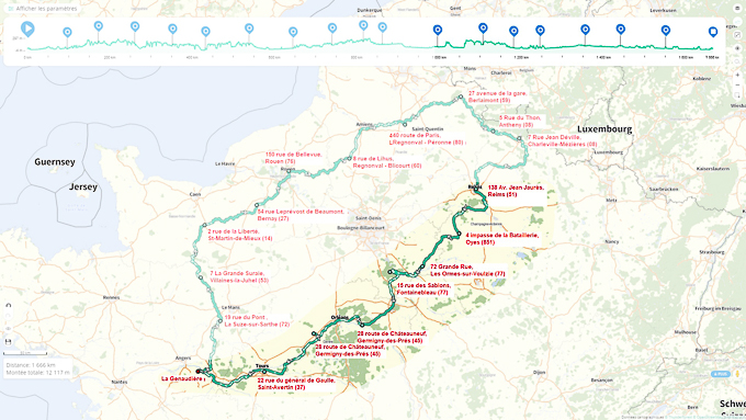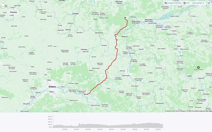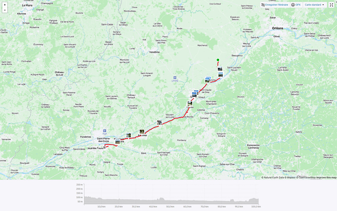 Une grande étape pratiquement plate car à partir de Montsoreau, nous roulons sur la D751 jusqu’à la maison.